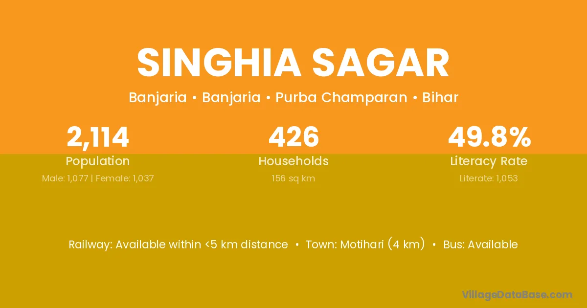 Motihari (4 km) is the nearest town to Singhia Sagar village for major economic activities and is located approximately 4 km away.