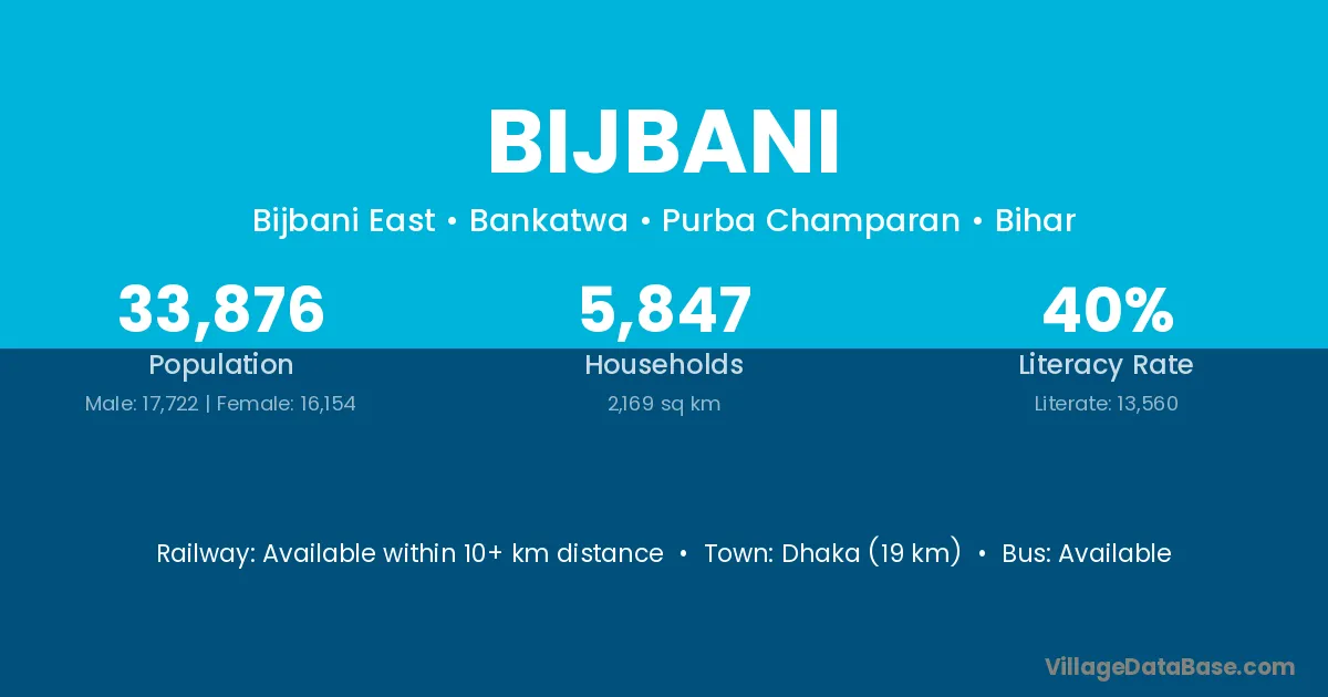 Dhaka (19 km) is the nearest town to Bijbani village for major economic activities and is located approximately 19 km away.