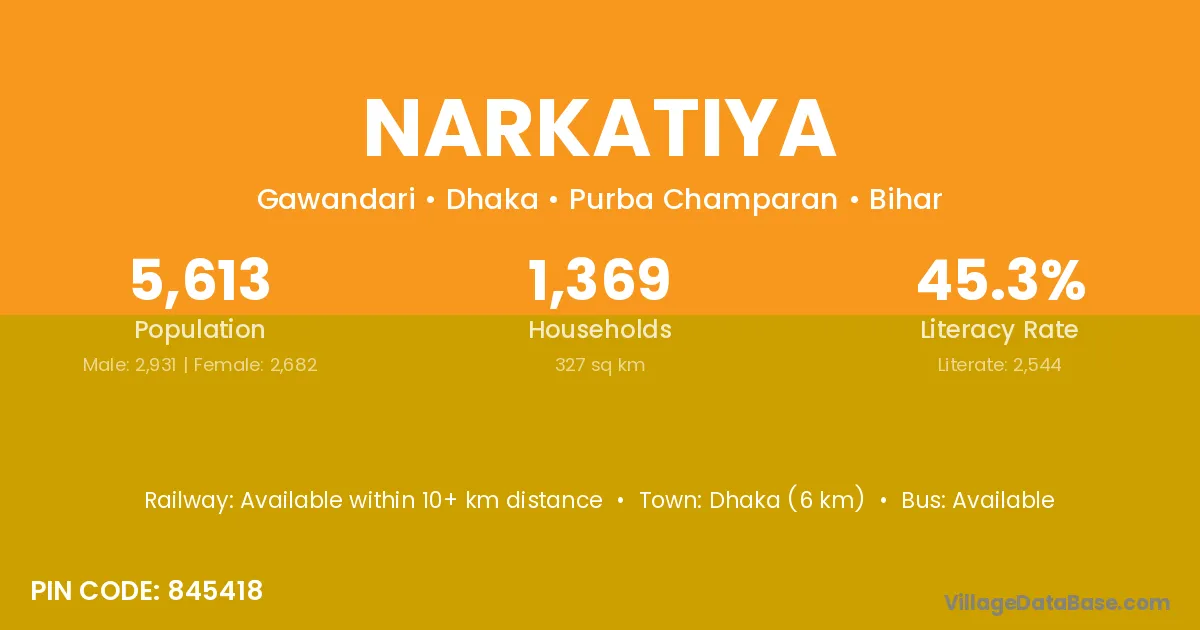 According to Census 2011 information, the village code of Narkatiya village is 845418.
