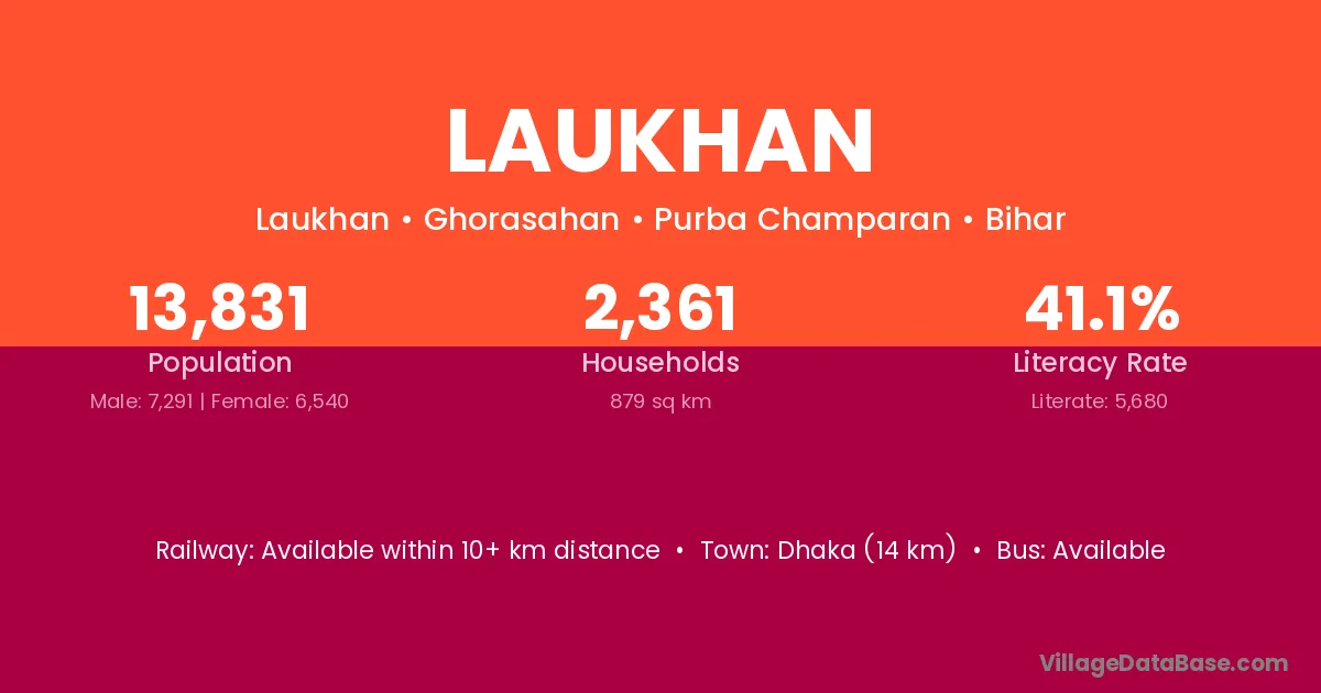 Laukhan village has a total population of 13,831 people, of which 7,291 are males and 6,540 are females.