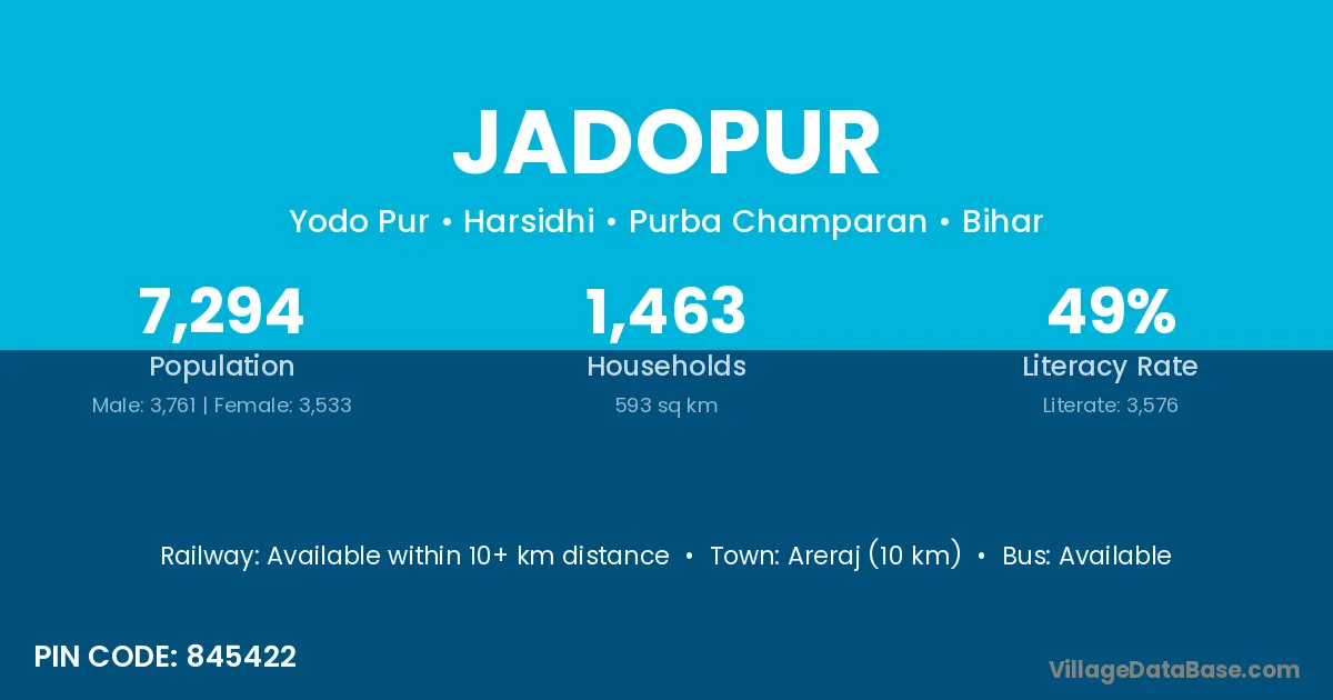 According to Census 2011 information, the village code of Jadopur village is 845422.