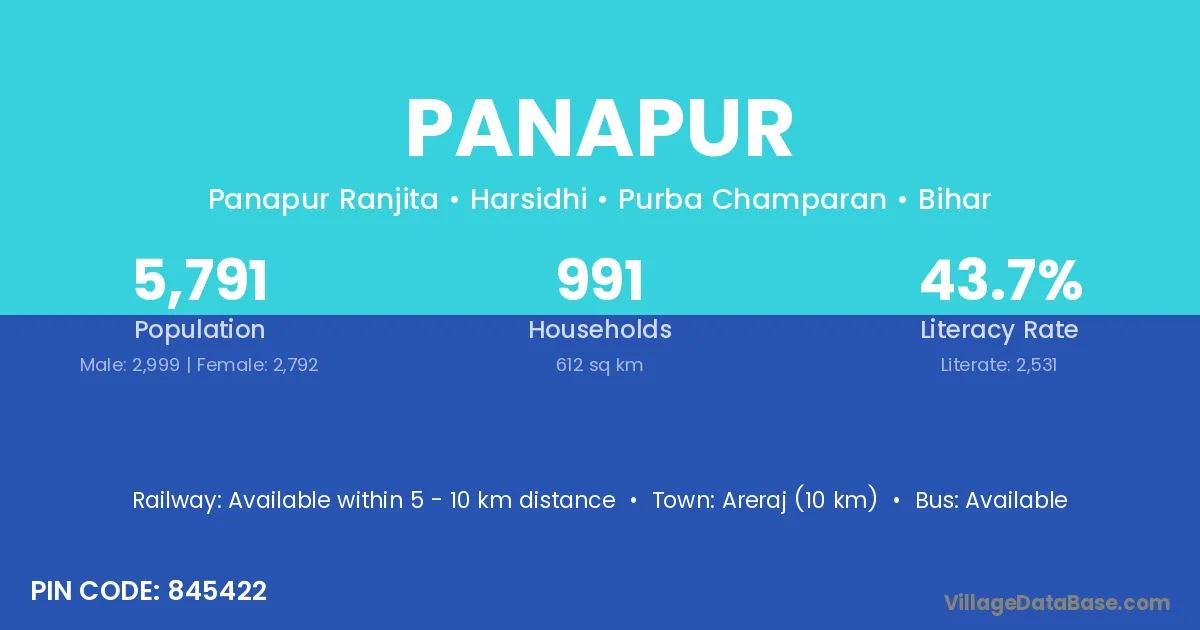 Areraj (10 km) is the nearest town to Panapur village for major economic activities and is located approximately 10 km away.