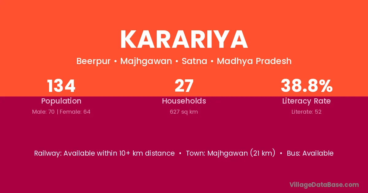 Karariya village has a total population of 6,700 people, of which 3,544 are males and 3,156 are females.