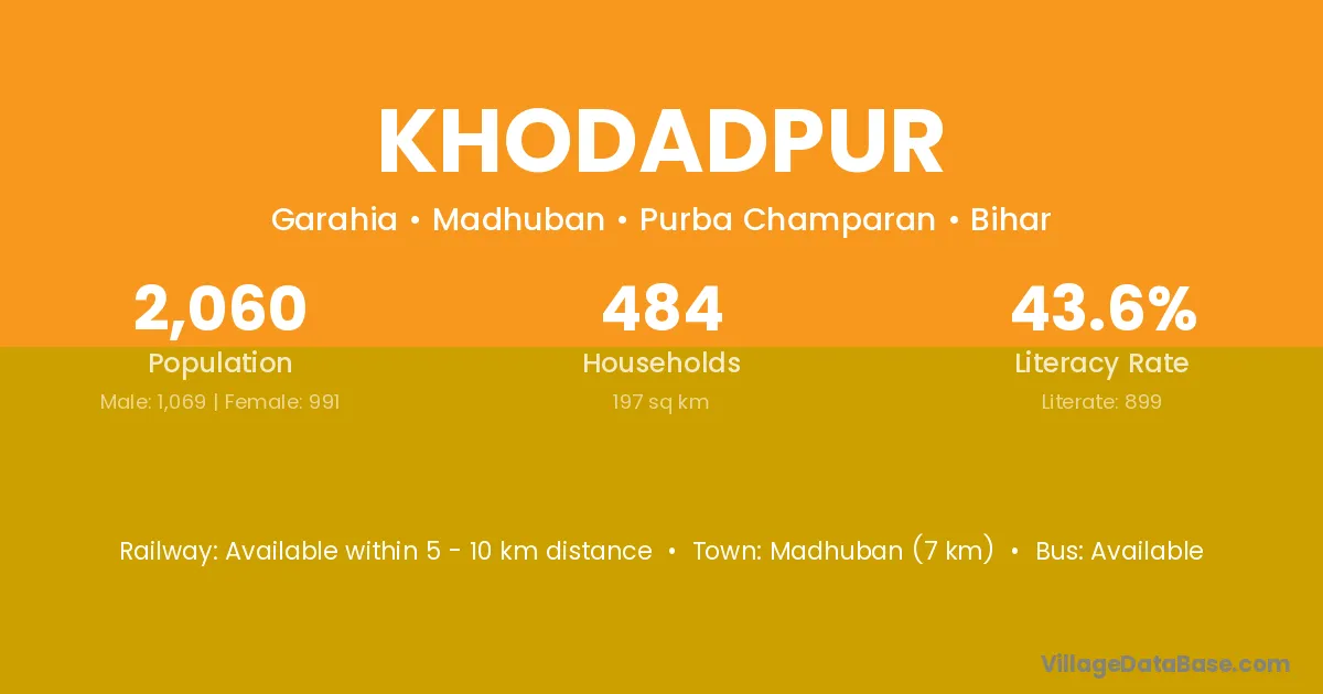 Madhuban (7 km) is the nearest town to Khodadpur village for major economic activities and is located approximately 7 km away.