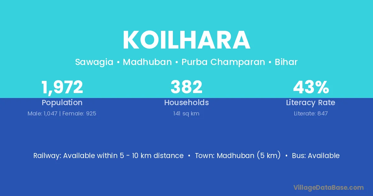 Madhuban (5 km) is the nearest town to Koilhara village for major economic activities and is located approximately 5 km away.