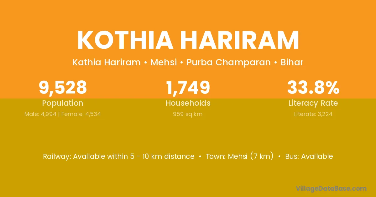 Kothia Hariram village has a total population of 9,528 people, of which 4,994 are males and 4,534 are females.
