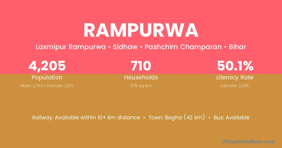 Mehsi (4 km) is the nearest town to Rampurwa village for major economic activities and is located approximately 4 km away.