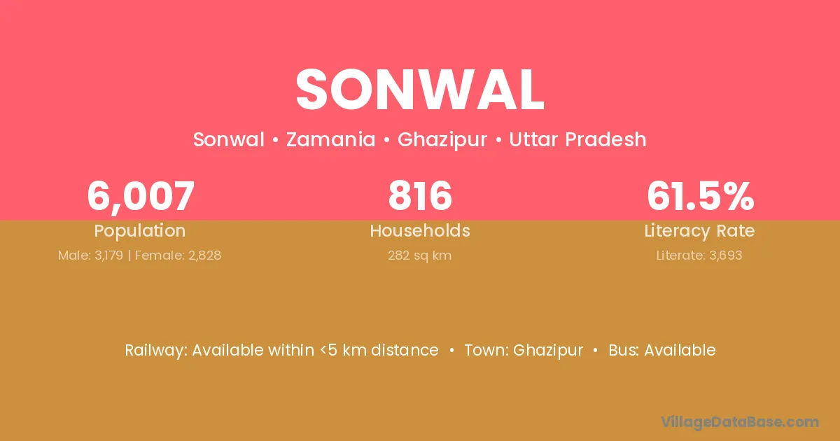 Sonwal village has a total population of 6,148 people, of which 3,173 are males and 2,975 are females.