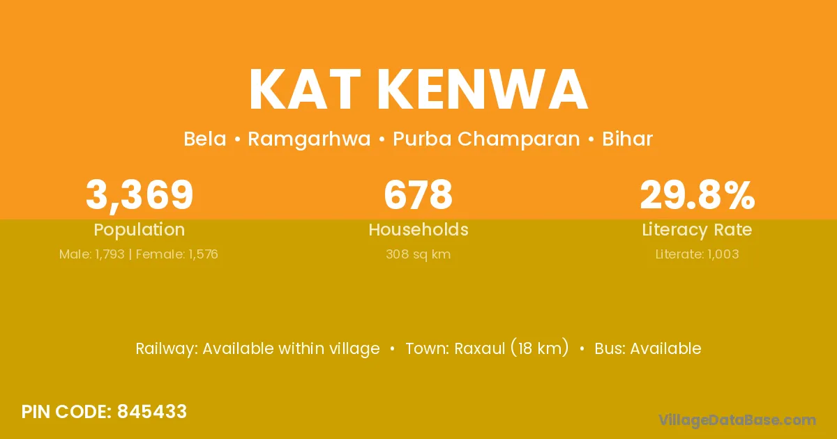 Raxaul (18 km) is the nearest town to Kat Kenwa village for major economic activities and is located approximately 18 km away.