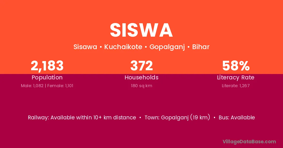 Raxaul (20 km) is the nearest town to Siswa village for major economic activities and is located approximately 20 km away.