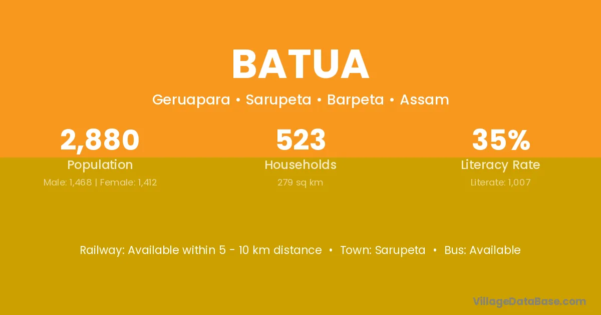 Purnia (45 km) is the nearest town to Batua village for major economic activities and is located approximately 45 km away.