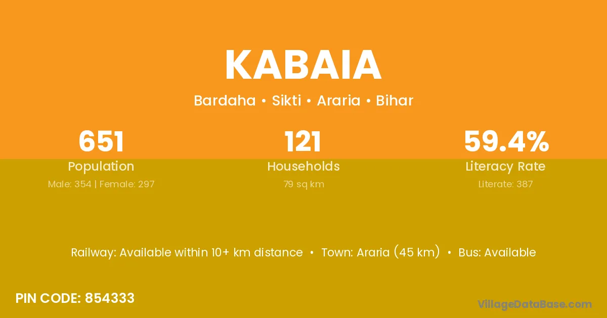 Purnia (90 km) is the nearest town to Kabaia village for major economic activities and is located approximately 90 km away.
