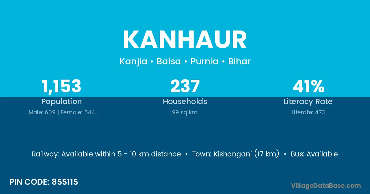 Kishanganj (17 km) is the nearest town to Kanhaur village for major economic activities and is located approximately 17 km away.