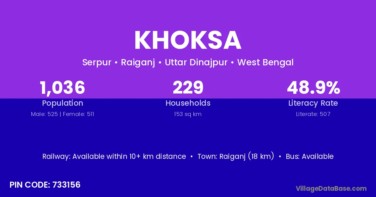 Purnia (40 km) is the nearest town to Khoksa village for major economic activities and is located approximately 40 km away.