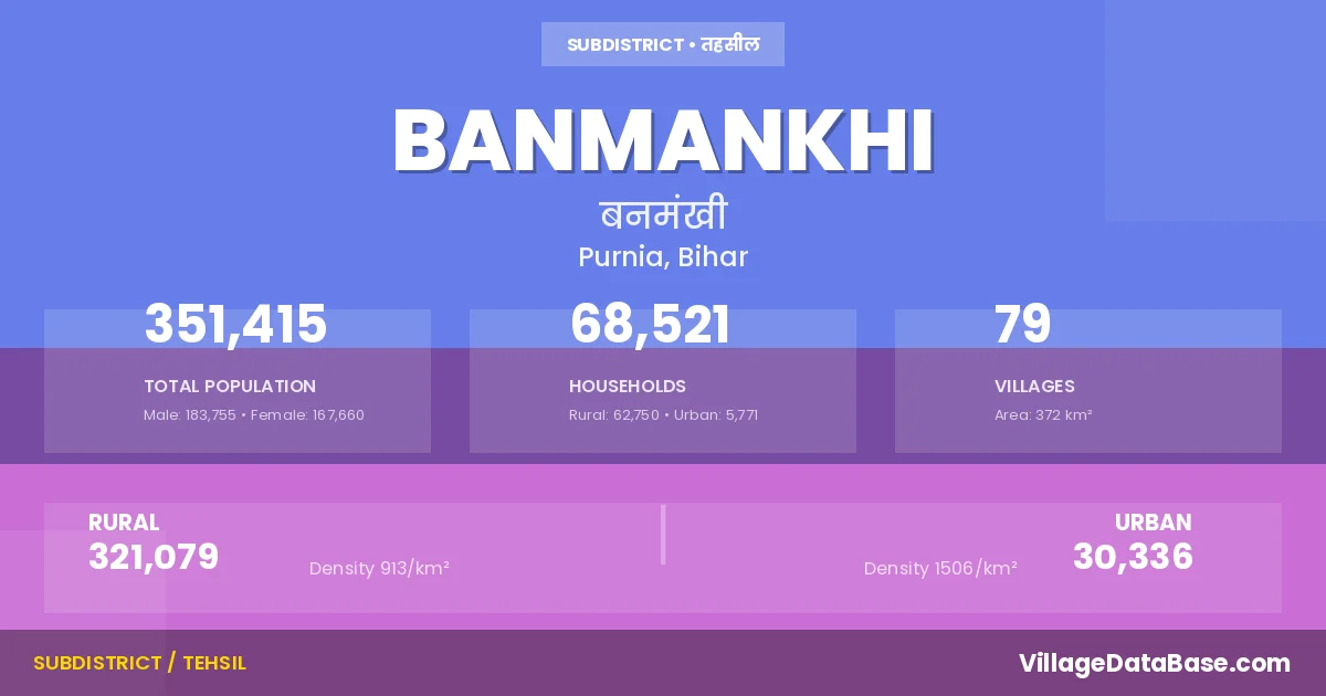Banmankhi Subdivision comprises about 79 villages. Below is a list of these villages along with information about their respective gram panchayats and the nearest town: