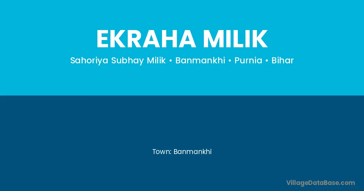 Ekraha Milik village is located in the Banmankhi Subdivision of the Purnia district in Bihar .
