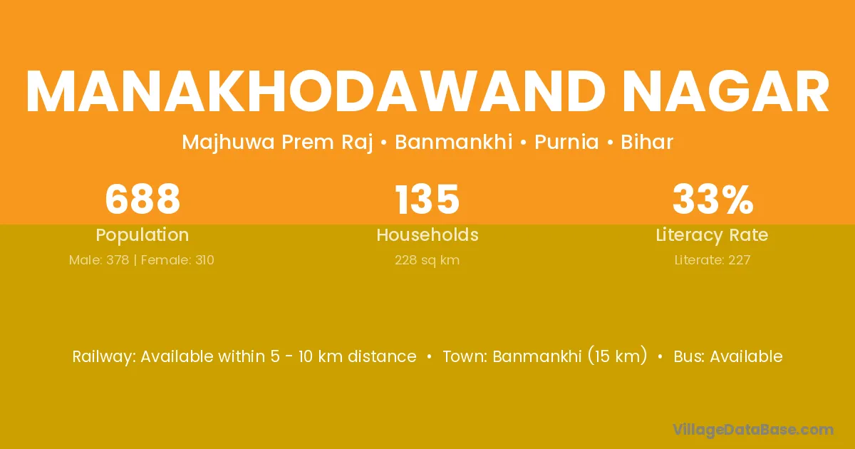 Banmankhi (15 km) is the nearest town to Manakhodawand Nagar village for major economic activities and is located approximately 15 km away.
