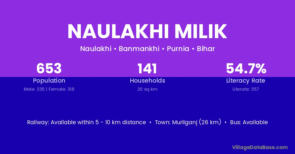 Murliganj (26 km) is the nearest town to Naulakhi Milik village for major economic activities and is located approximately 26 km away.