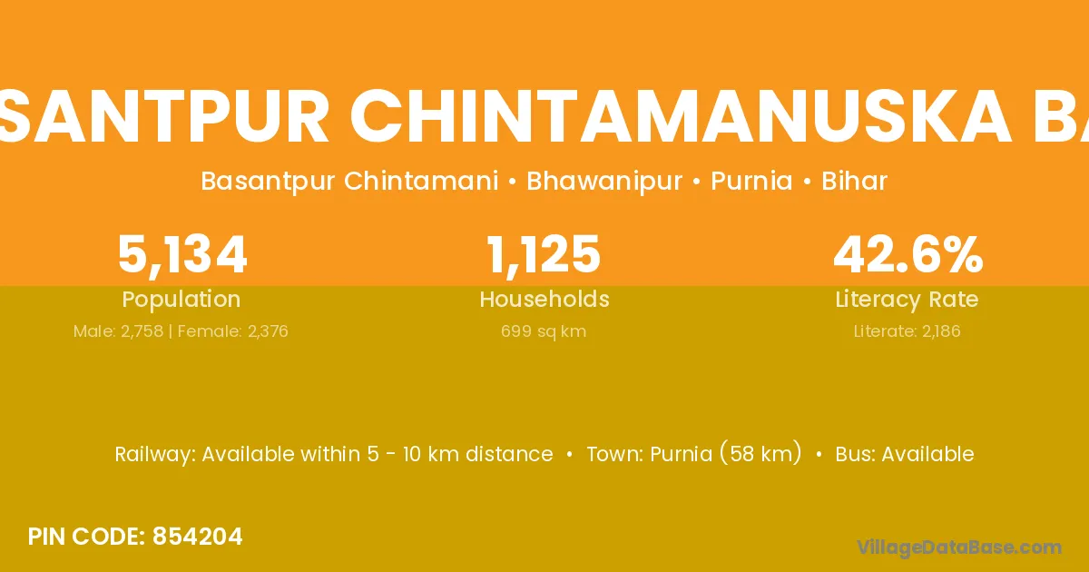 Purnia (58 km) is the nearest town to Basantpur Chintamanuska Bari village for major economic activities and is located approximately 58 km away.