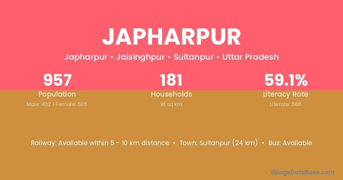 The literacy rate of Japharpur village is 67.29%. Male literacy stands at 76.87% and female literacy at 55.74%.