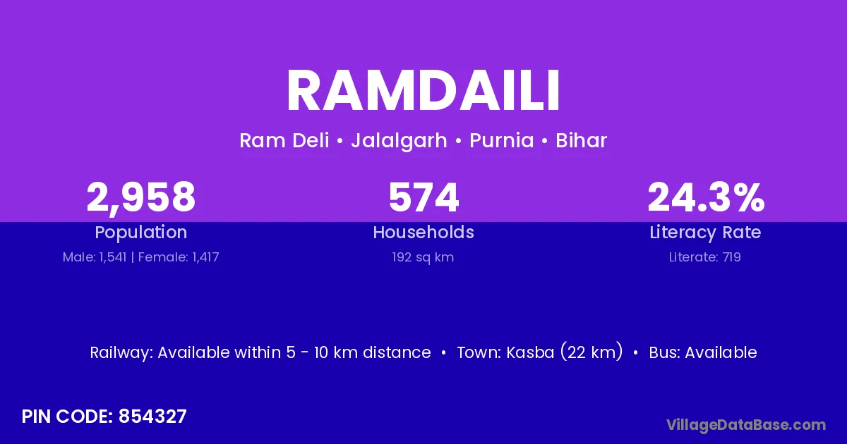 Kasba (22 km) is the nearest town to Ramdaili village for major economic activities and is located approximately 22 km away.