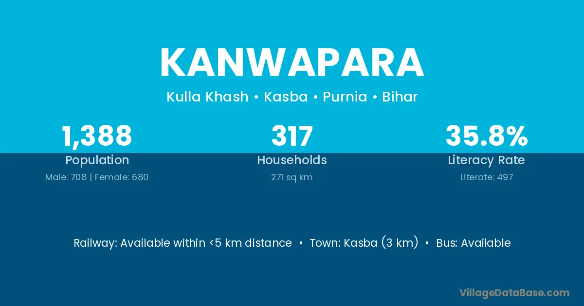 Kasba (3 km) is the nearest town to Kanwapara village for major economic activities and is located approximately 3 km away.