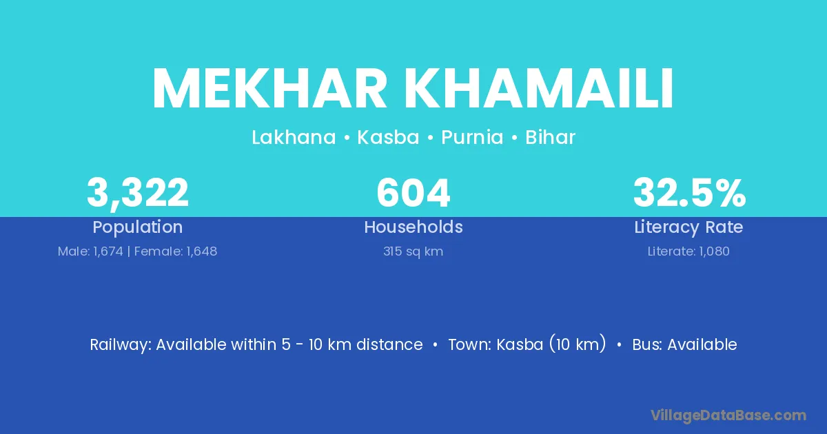 Kasba (10 km) is the nearest town to Mekhar Khamaili village for major economic activities and is located approximately 10 km away.