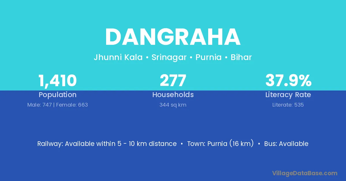 Purnia (16 km) is the nearest town to Dangraha village for major economic activities and is located approximately 16 km away.
