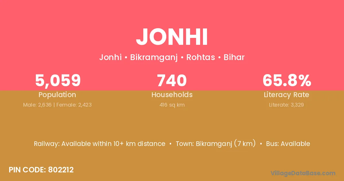Bikramganj (7 km) is the nearest town to Jonhi village for major economic activities and is located approximately 7 km away.