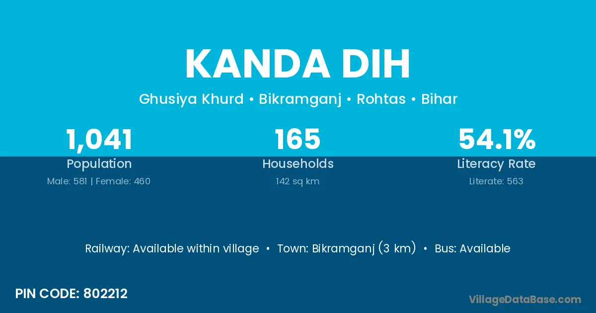 Bikramganj (3 km) is the nearest town to Kanda Dih village for major economic activities and is located approximately 3 km away.