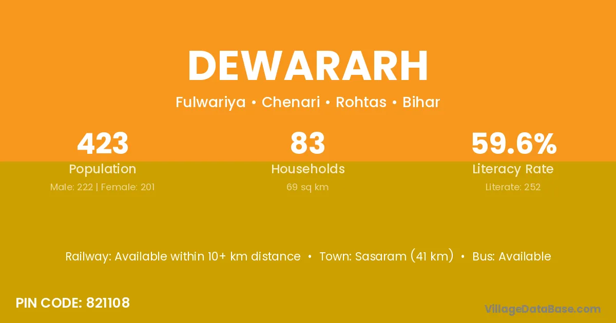 Sasaram (41 km) is the nearest town to Dewararh village for major economic activities and is located approximately 41 km away.