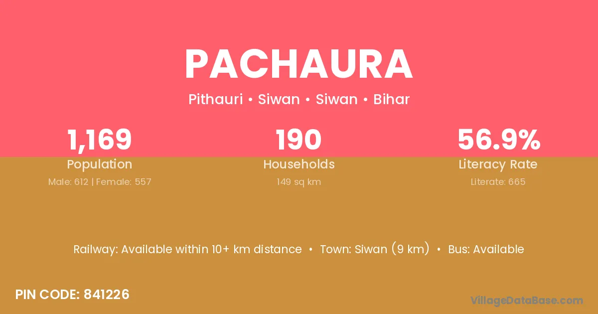 Sasaram (30 km) is the nearest town to Pachaura village for major economic activities and is located approximately 30 km away.