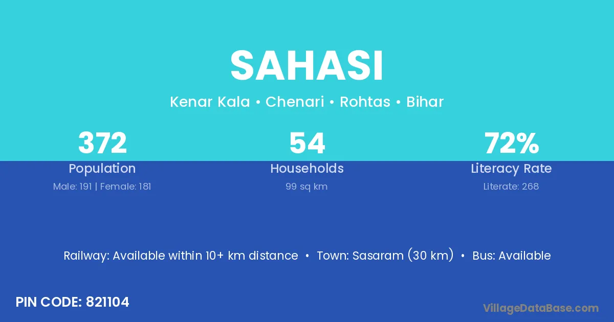 Sasaram (30 km) is the nearest town to Sahasi village for major economic activities and is located approximately 30 km away.