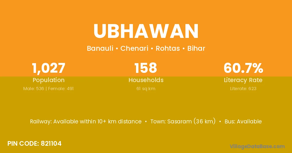 Sasaram (36 km) is the nearest town to Ubhawan village for major economic activities and is located approximately 36 km away.