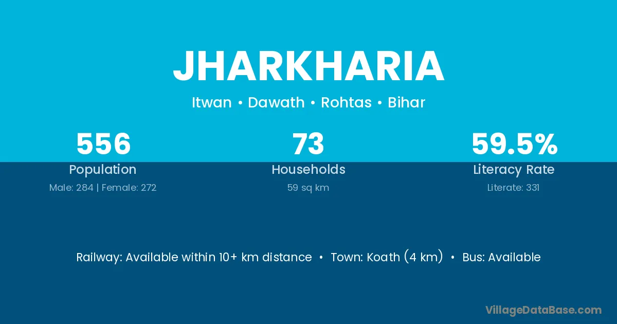 Koath (4 km) is the nearest town to Jharkharia village for major economic activities and is located approximately 4 km away.