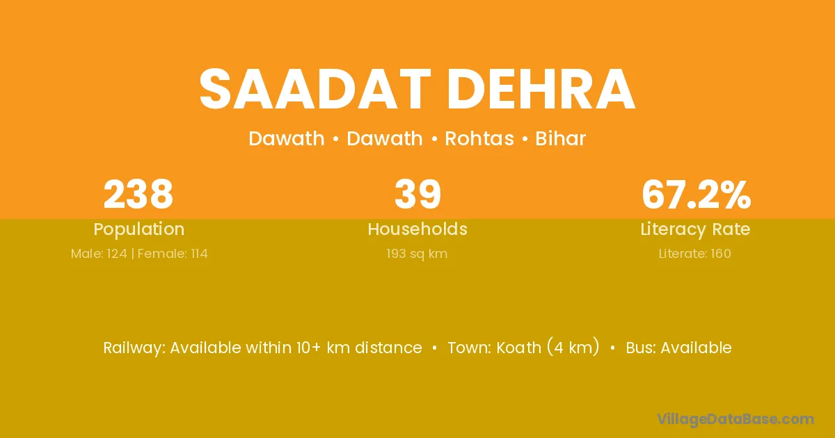 Koath (4 km) is the nearest town to Saadat Dehra village for major economic activities and is located approximately 4 km away.