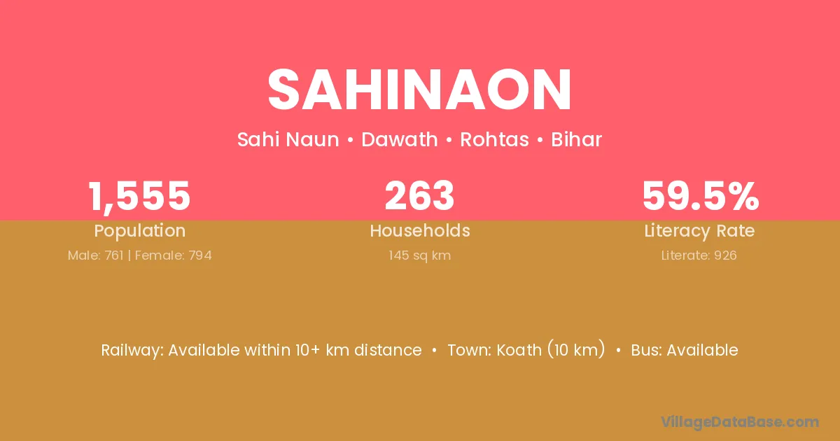 Koath (10 km) is the nearest town to Sahinaon village for major economic activities and is located approximately 10 km away.