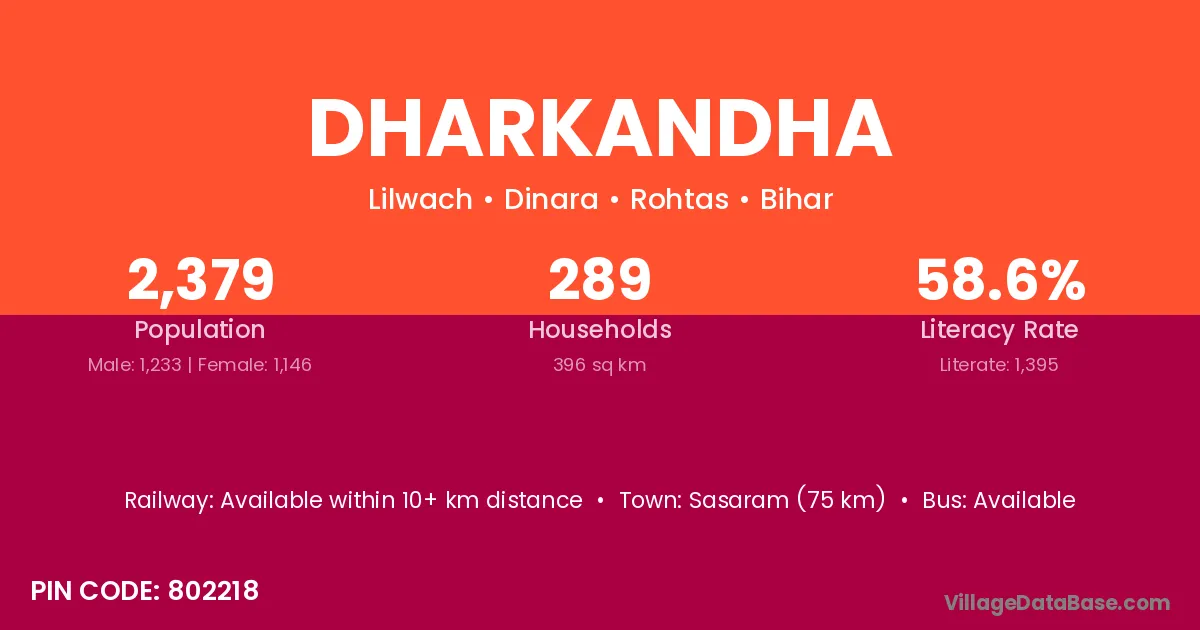 Sasaram (75 km) is the nearest town to Dharkandha village for major economic activities and is located approximately 75 km away.