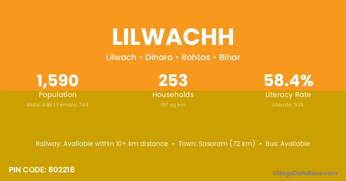 Sasaram (72 km) is the nearest town to Lilwachh village for major economic activities and is located approximately 72 km away.
