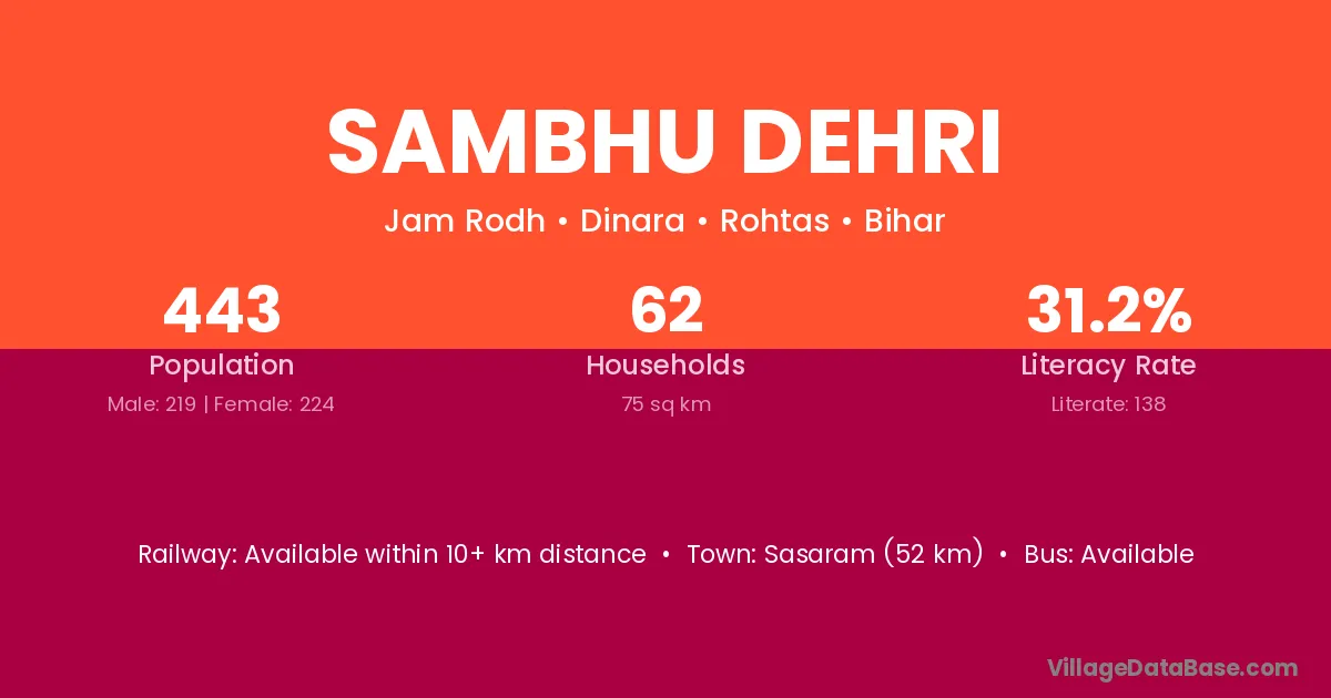 Sasaram (52 km) is the nearest town to Sambhu Dehri village for major economic activities and is located approximately 52 km away.