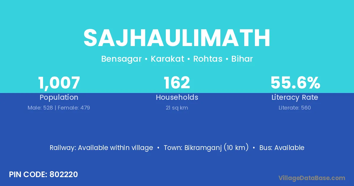 Bikramganj (10 km) is the nearest town to Sajhaulimath village for major economic activities and is located approximately 10 km away.