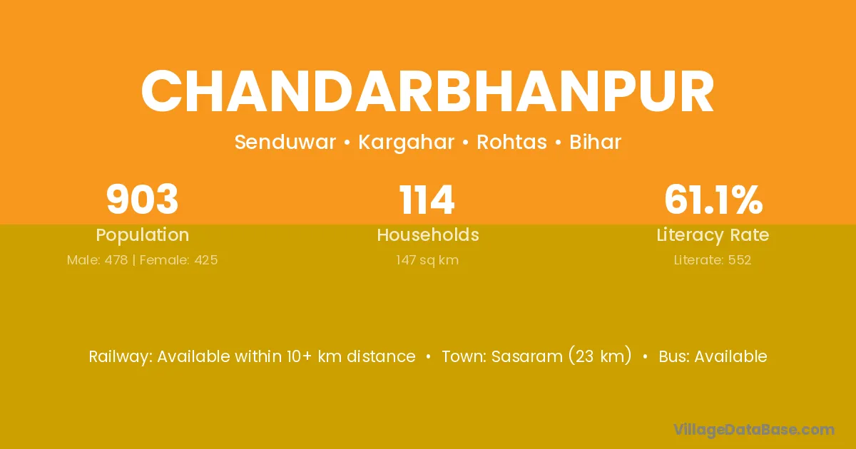 Sasaram (23 km) is the nearest town to Chandarbhanpur village for major economic activities and is located approximately 23 km away.