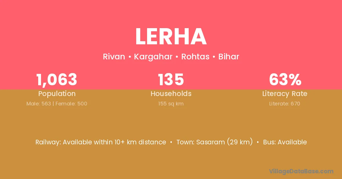 Sasaram (29 km) is the nearest town to Lerha village for major economic activities and is located approximately 29 km away.