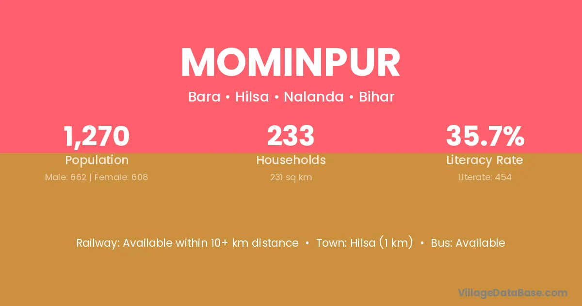 Sasaram (20 km) is the nearest town to Mominpur village for major economic activities and is located approximately 20 km away.