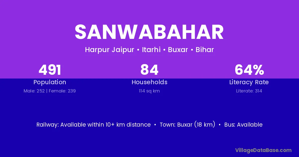 Sasaram (32 km) is the nearest town to Sanwabahar village for major economic activities and is located approximately 32 km away.