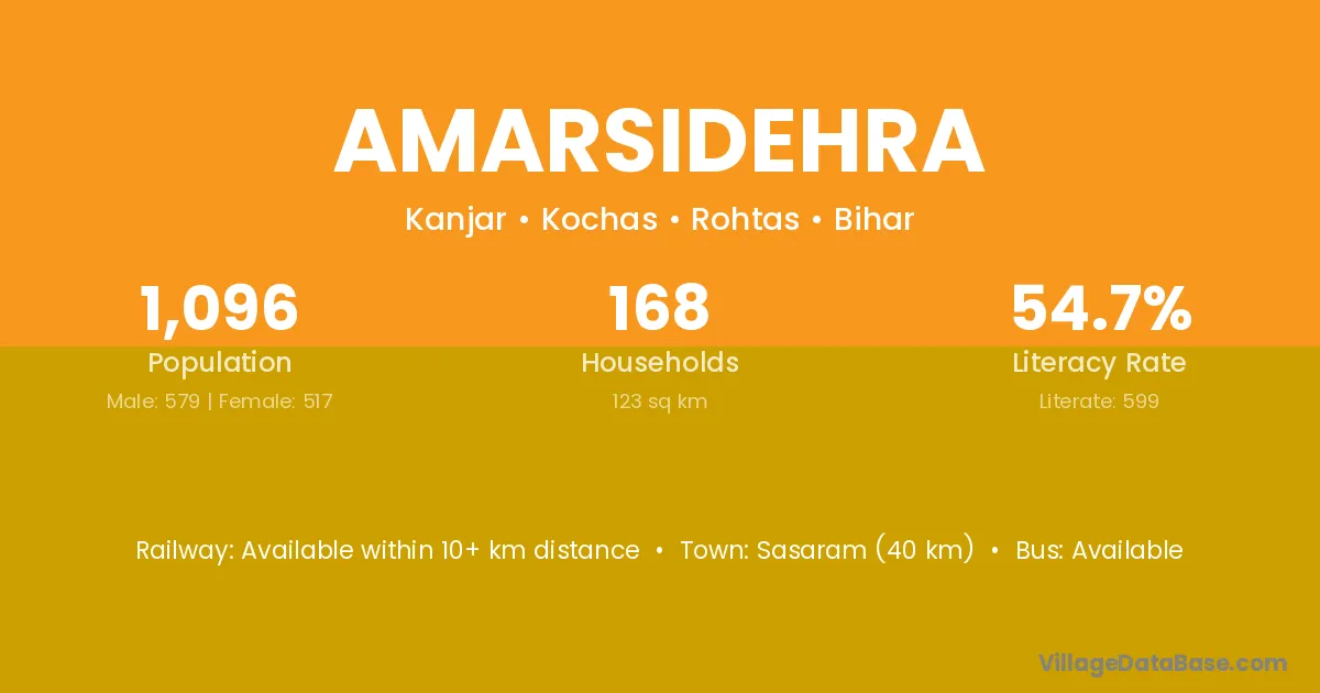 Sasaram (40 km) is the nearest town to Amarsidehra village for major economic activities and is located approximately 40 km away.