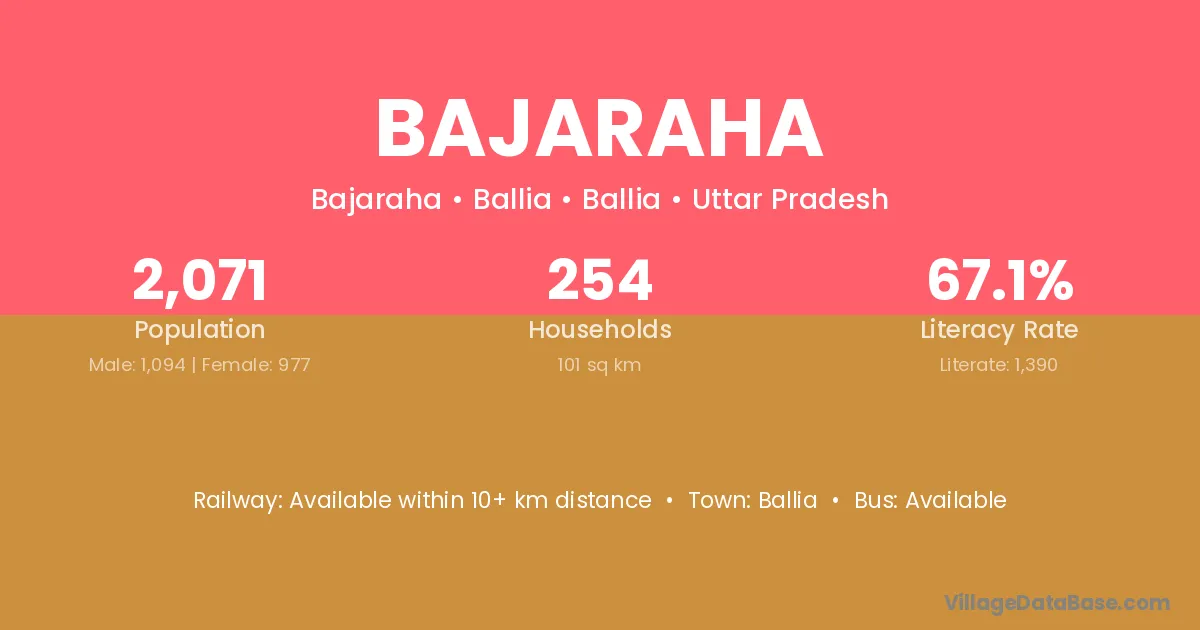Sasaram (30 km) is the nearest town to Bajaraha village for major economic activities and is located approximately 30 km away.