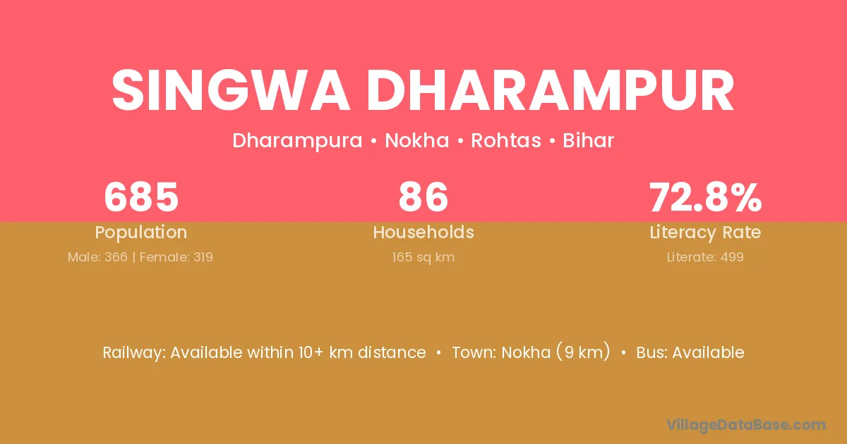 Singwa Dharampur village has a total population of 685 people, of which 366 are males and 319 are females.