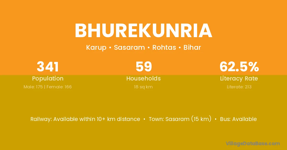 Sasaram (15 km) is the nearest town to Bhurekunria village for major economic activities and is located approximately 15 km away.