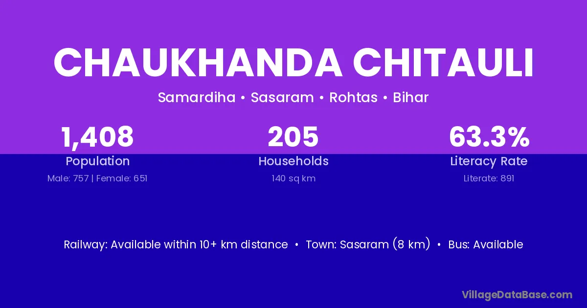 Sasaram (8 km) is the nearest town to Chaukhanda Chitauli village for major economic activities and is located approximately 8 km away.